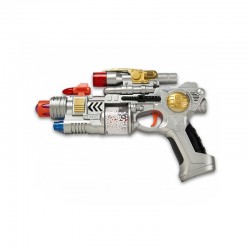Indulj a csatába és válj a jövő harcosává evvel a futurisztikus megjelenésű lézer fegyverrel, melynek megjelenése a jövőt idézi. Húzd meg a ravaszt és a fegyver középső tartálya felpörög és a pisztoly élethű hangokat ad és közben pirosan villog. Hívd ki barátaidat egy izgalmas lézercsatára és puffogtass kedvedre. Az izgalom és a remek szórakozás garantált.