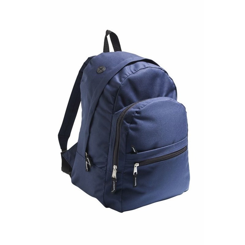 Hátizsák nagyméretű középső rekesszel, mindkét oldalról elhúzható dupla cipzárral 3 db cipzáras első zsebbel fülhallgató kivezető nyílással. A hátizsák alsó része belső varrással erősített. Állítható, párnázott megerősített vállpánttal és párnázott hátrésszel a nagyobb kényelemért. Anyaga: 100% Poliészter. Űrtartalom: 24 liter. Mérete: 43x33x17 cm