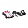 Tapasztalja meg a versenyt a vezetőülés szemszögéből, egy okos telefonon keresztül közvetlenül a vezetőfülke kamerájából a virtuális szemüvegbe továbbítva. Ezzel a könnyen használható távirányítós autóval akár 16 km/h sebességgel száguldhat a versenyeken. Vegye fel, szerkessze és ossza meg a verseny videóit az ingyenes FPV alkalmazáson keresztül. Töltse le az ingyenes alkalmazást egy okos telefonra, helyezze a mellékelt virtuális szemüvegbe, majd élje át a verseny izgalmait vezetőülés kamerájából. Az egyedülálló LED-es világítással és erős futóművel rendelkező távirányítású autó képes a beltéri és kültéri utakat róni Az autó USB-n keresztül tölthető. A 4-csatornás 2.4GHz-es távirányítóhoz 2 db AAA elem szükséges (nem tartozék), hatósugara 75 méter.